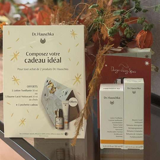 Rituel de nettoyage du visage Dr. Hauschka, gommage capillaire, shampooing, masque capillaire en infusion vapeur et luminothérapie, pluie de rinçage avec l’arche, pré séchage des cheveux.